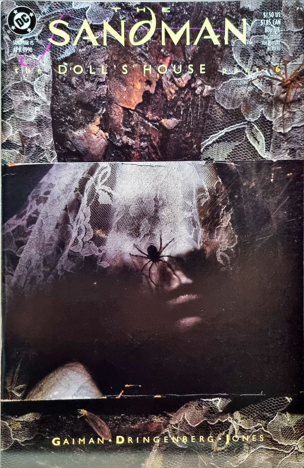 The Doll’s House, Part 6 of 7. The secret of the Dream Vortex is revealed as Sandman delves into the dreams of the people trapped in the Doll’s House. Written by Neil Gaiman, with art by Mike Dringenberg and Malcolm Jones III. Painted cover by Dave McKean. Suggested for Mature Readers. New Format.