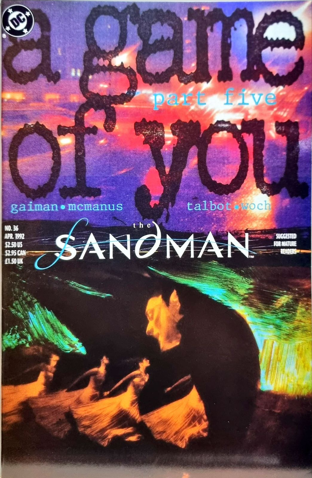 A Game of You, Part 2 of 6. Barbie returns to the Land, a place she has not visited in her dreams since the events of ‘The Doll’s House’ storyline. Written by Neil Gaiman, with art by Shawn McManus. Painted cover by Dave McKean. Suggested for Mature Readers. New Format..